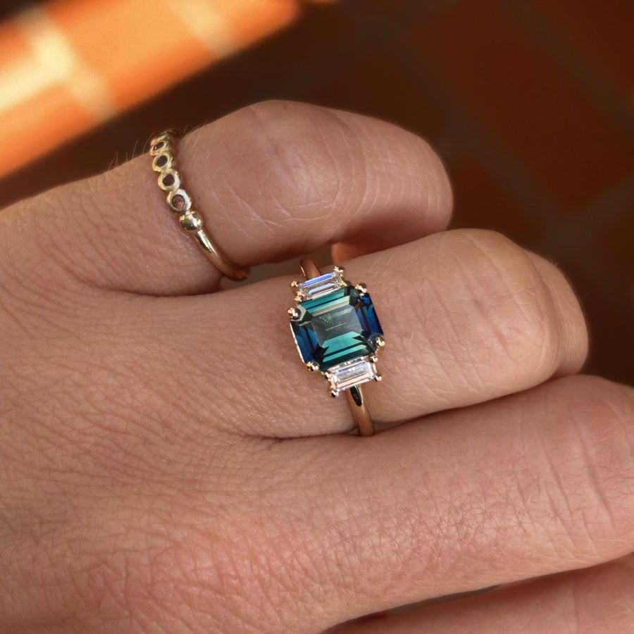Jacey Ring - 2.52 Carat Blue-Green Parti Emerald Cut Sapphire