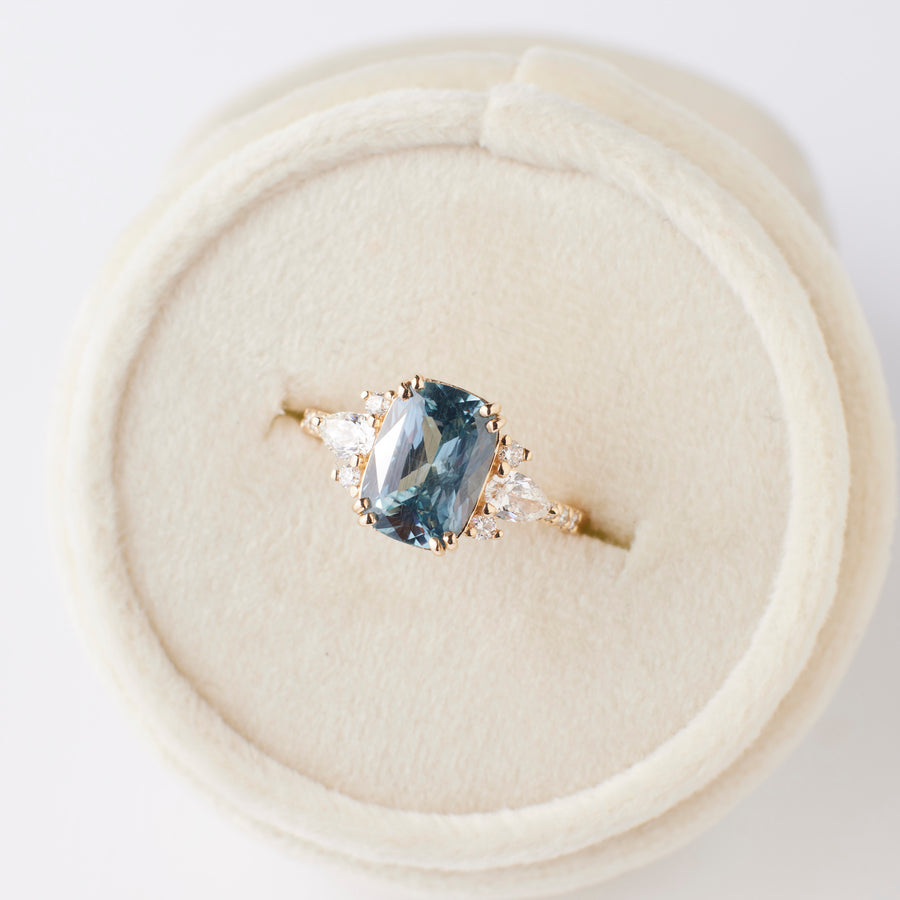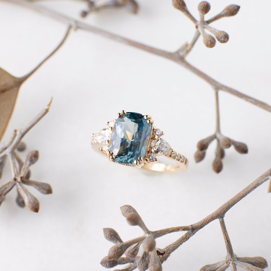 Rosalind Ring - 3.06 Carat Aqua Blue Cushion Sapphire
