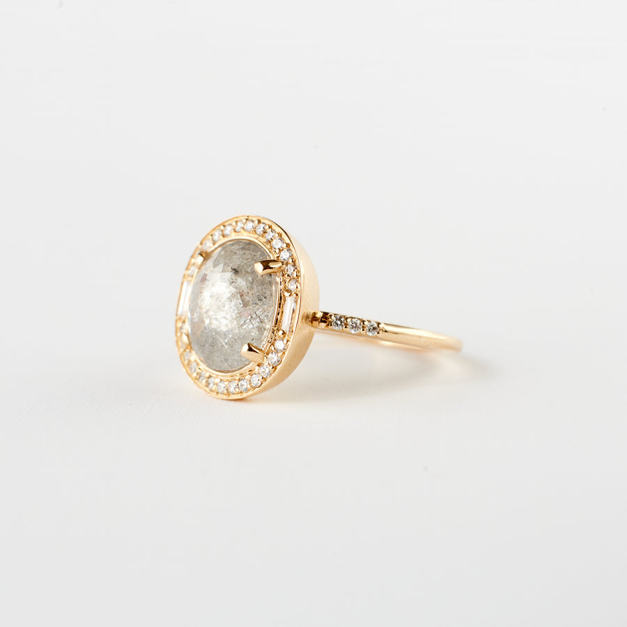 - The total carat weight of diamonds depends on the size of your center stone (bigger stones will require more diamonds in the halo). On average our Athena settings are set with approximately .17 carats of natural white diamonds with clarity SI1+ and color of H+.
