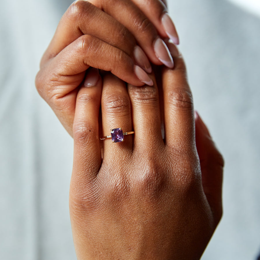 Ashia Ring - 1.55 Carat Pink Purple Radiant Sapphire