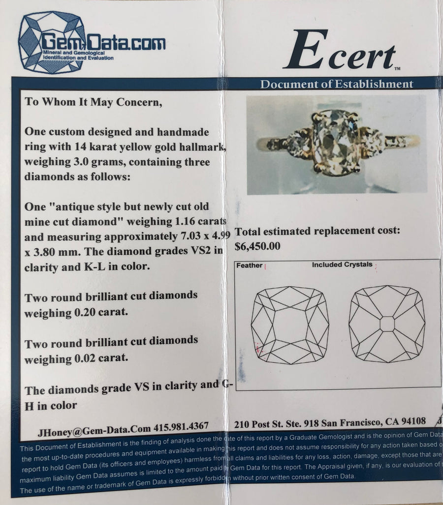 - This ring has been appraised by an independent third party. See last image for certificate details.