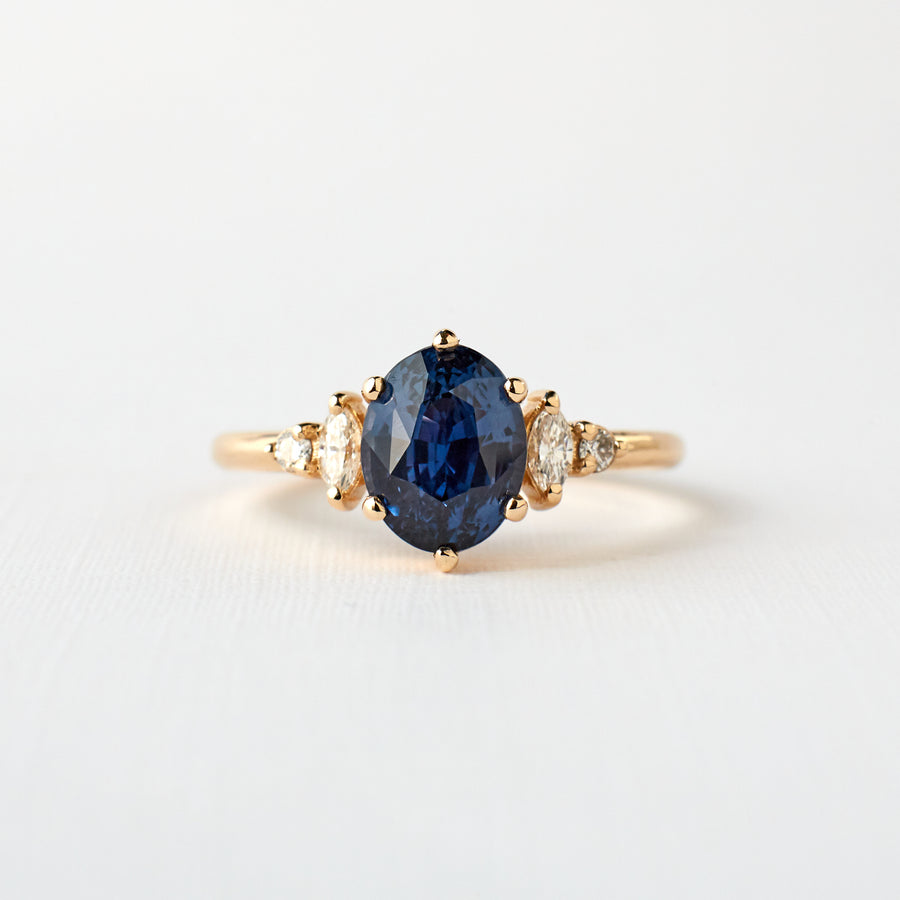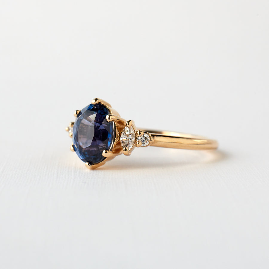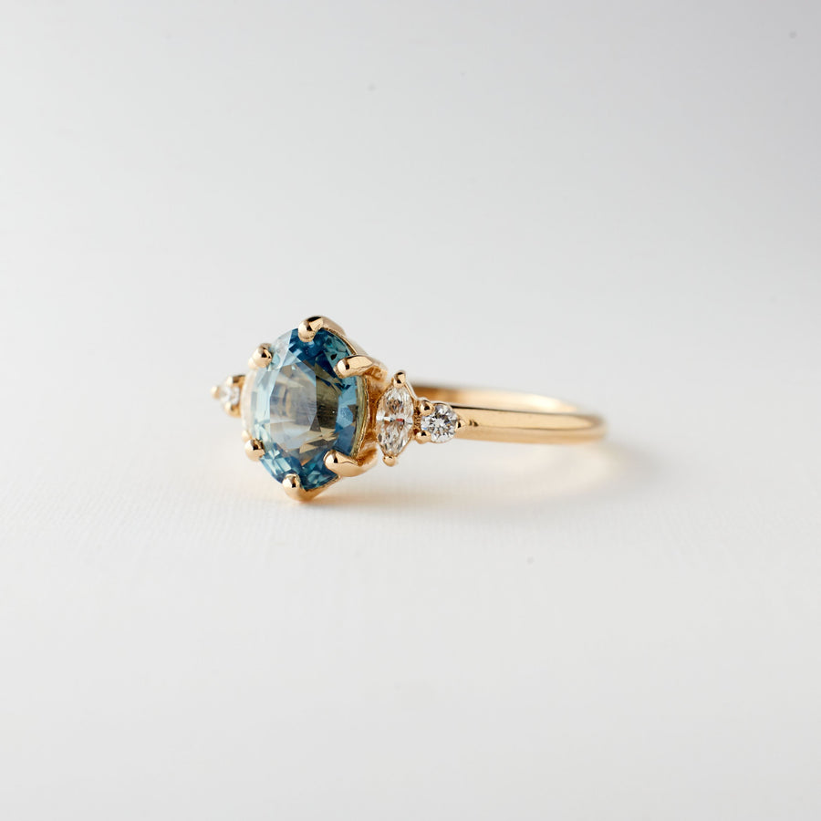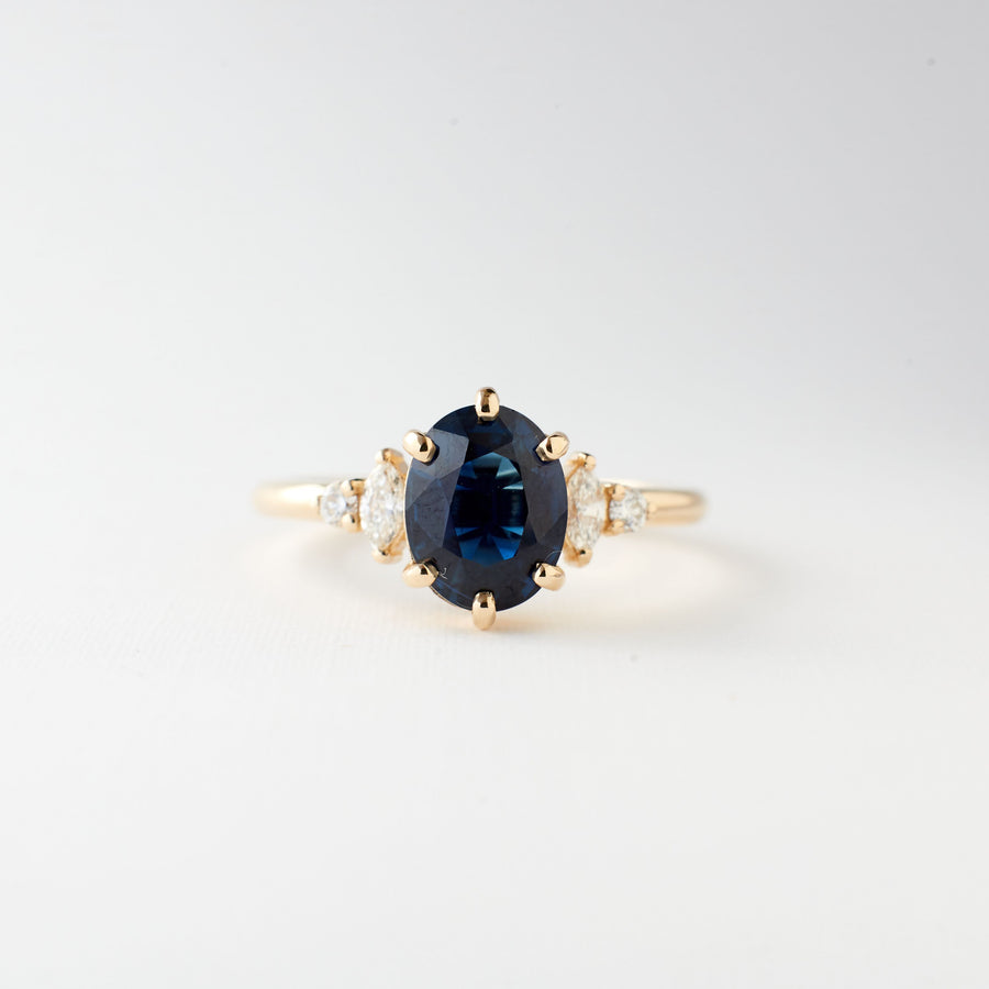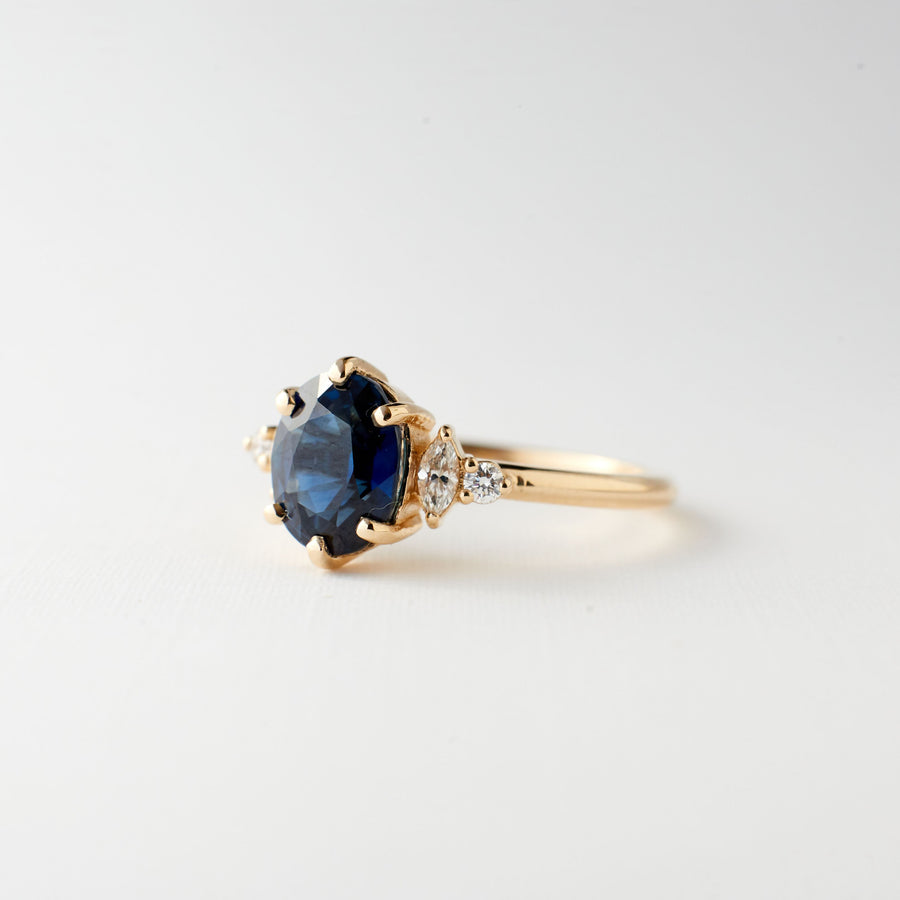 About the Desi: The Desi ring features marquise and round accent diamonds that gently taper away from the finger.