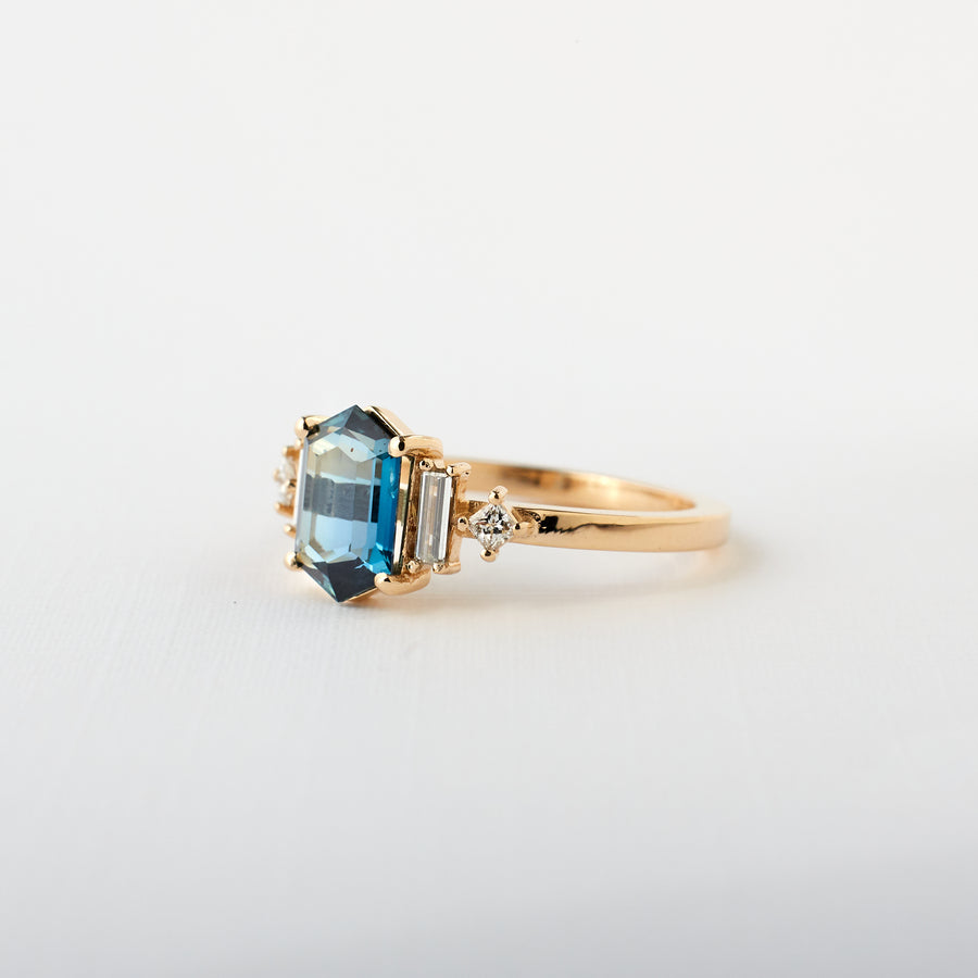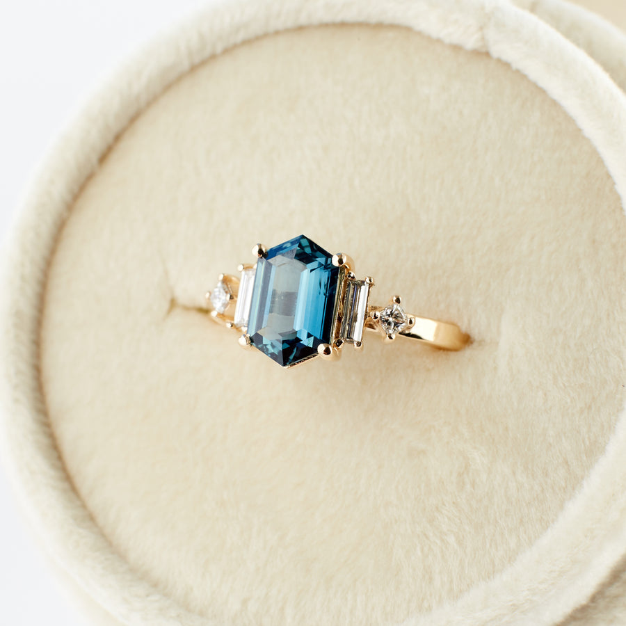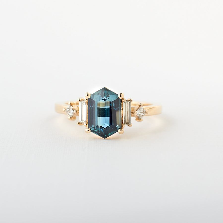Josie Ring - 1.59 carat teal-blue hexagon shaped sapphire