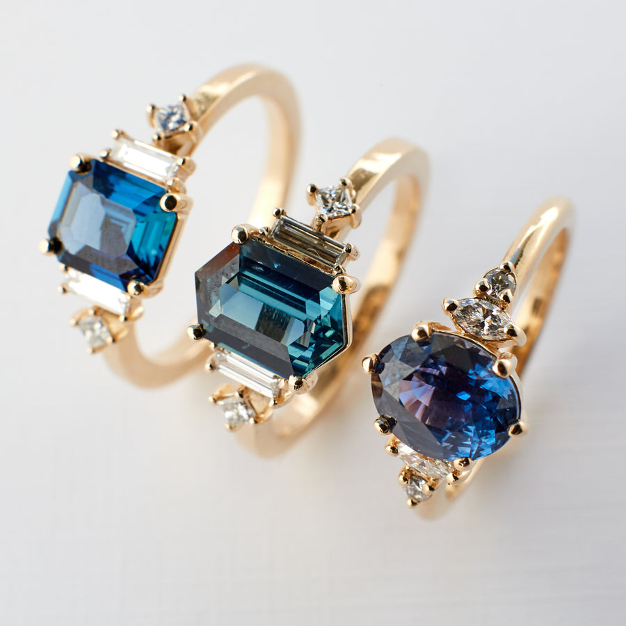 - Features a 1.59 carat teal-blue, hexagon shaped, unheated sapphire, ethically sourced via Caleb B. Quashen from Madagascar